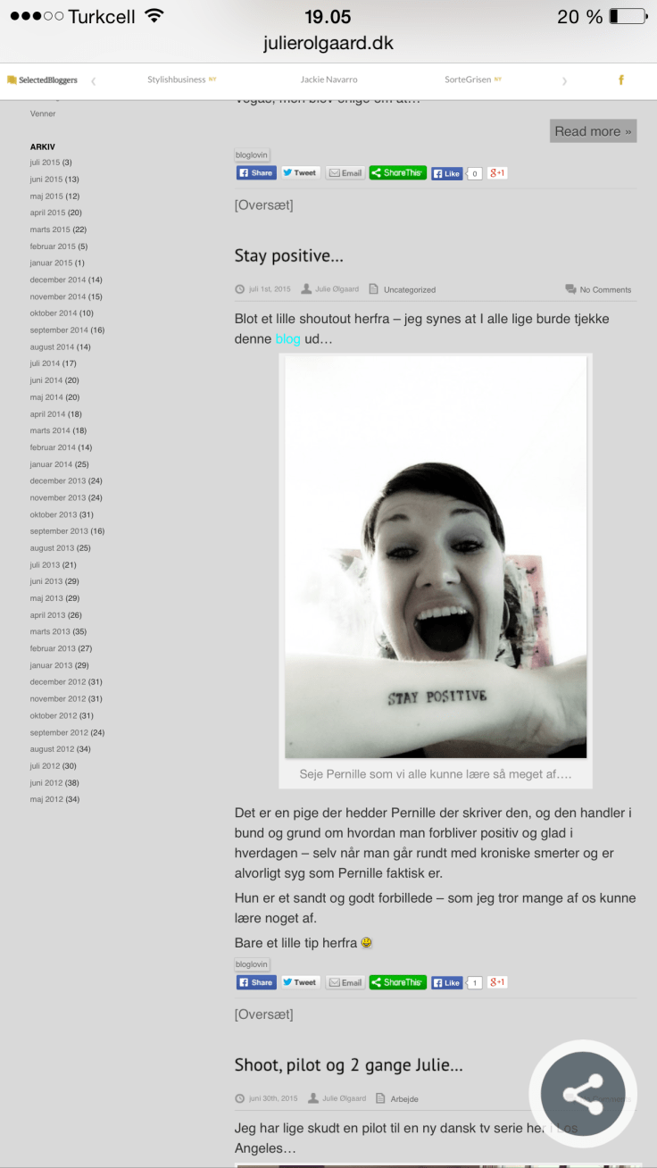 Imens jeg er dernede kan jeg se, at statistikken på bloggen boomer. Masser af besøgende. Og jeg har jo ikke skrevet indlæg, imens jeg var på ferie. Men så viser det sig, at den fantastiske Julie Ølgaard har delt min blog. Tjek det lige her. Det er dæleme store sager og jeg er meget stolt. Sikke en blåstempling. Af hjertet tak.
