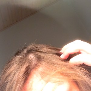 Jeg starter min fletning på toppen af hovedet. Og efter en par flet, så går det op for mig, at jeg ikke helt kan finde den plet øverst på hovedet, som plejer at være i skilningen.