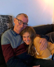 Vi krammer. Faktisk så krammer jeg ham hver gang, jeg går forbi ham. Så smiler han. Når